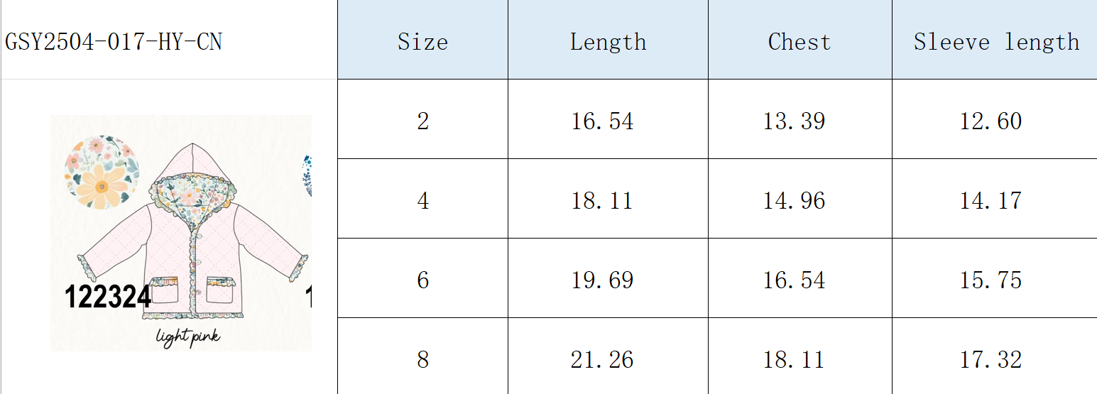 - Ruffle trim detailing along hood, button placket, cuffs & pockets